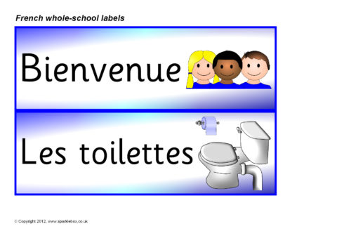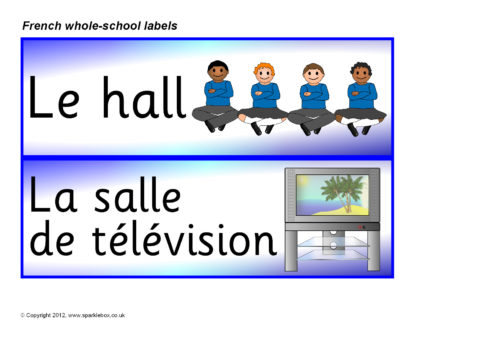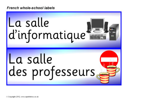 A set of printable labels/signs for places found throughout the whole school, in French.