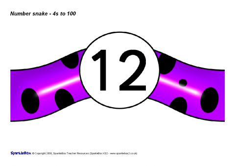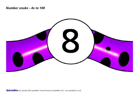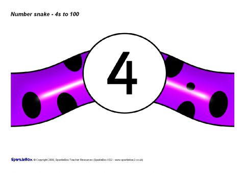 Assemble these snake segments in your classroom to show numbers in 4s up to 100. A fun and colourful means of reinforcing the 4 times table. Each segment is A4 sized but can be printed smaller using Adobe Reader’s ‘page scaling’ function if needed.