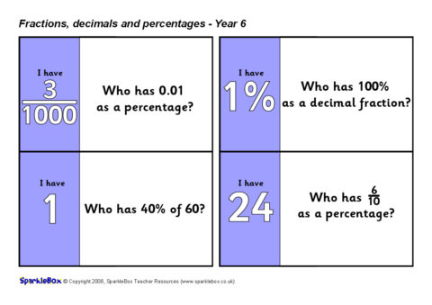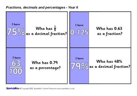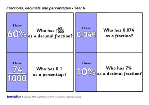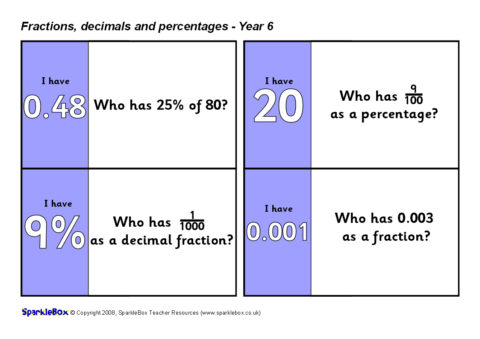 Year 6 Fractions, Decimals and Percentages Loop Cards