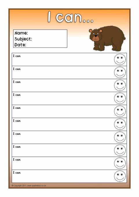 Editable target sheets (for Microsoft Word) with the text ‘I am learning to...’, ‘My next goal is...’ and ‘I can...’.  Each sheet has space for 10 targets.