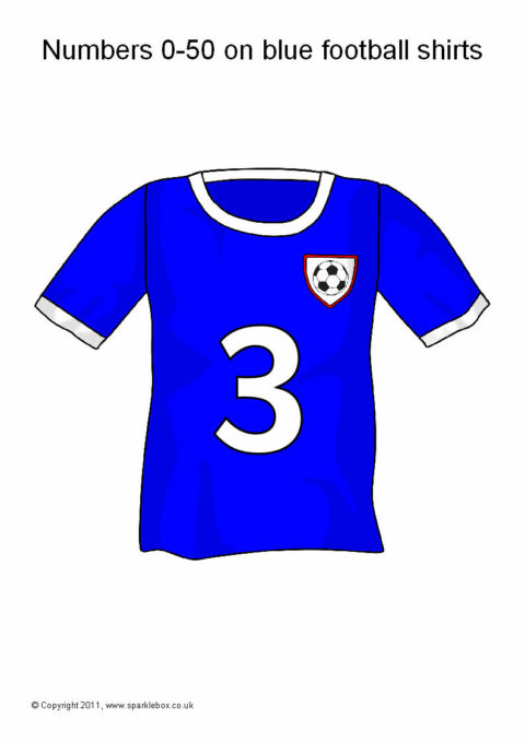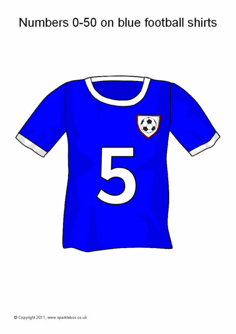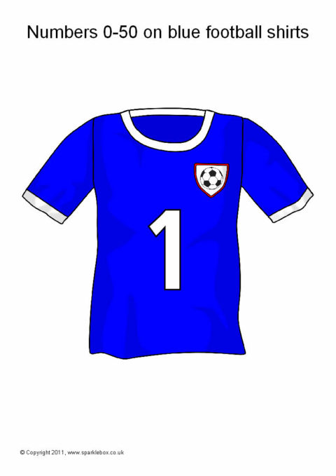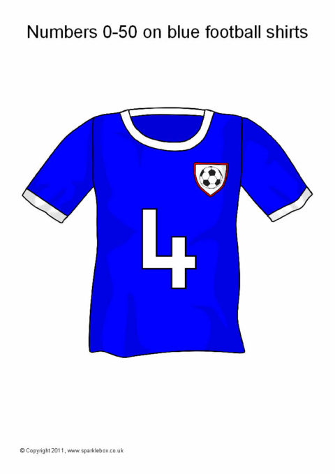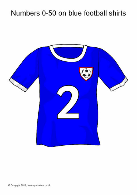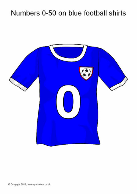 Numbers 0-50 on Blue Football Shirts (SB6789) - SparkleBox