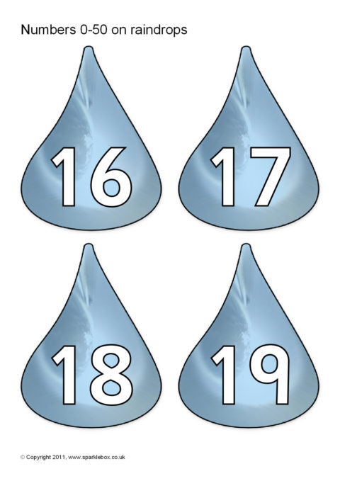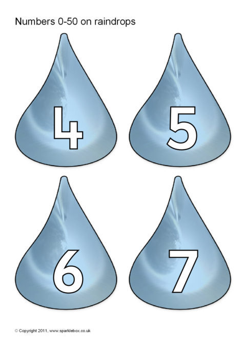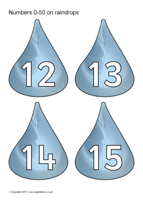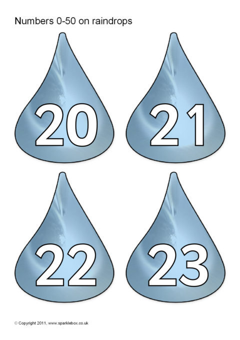 Numbers 0-50 on Raindrops (SB6800) - SparkleBox