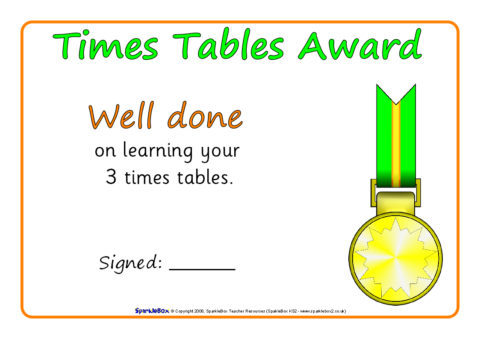 15 simple printable certificates for Numeracy work, times tables and multiplication tables.