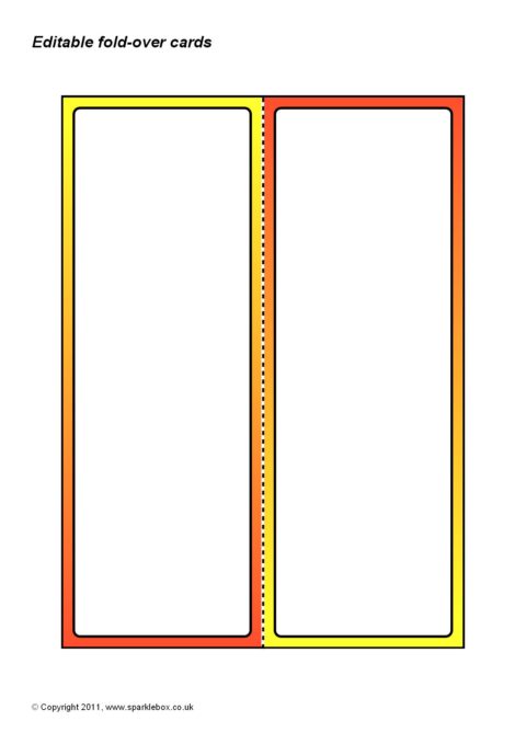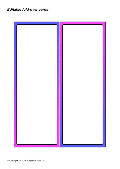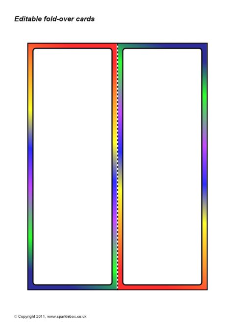 A set of basic fold-over cards with coloured borders that can be used for a variety of purposes.  Use them as desktop place cards, task cards or as reference cards to sit on pupils’ desks with useful vocabulary.