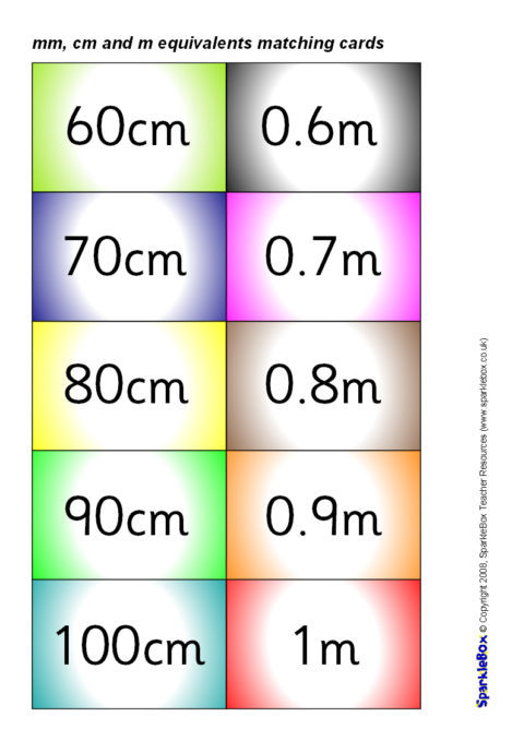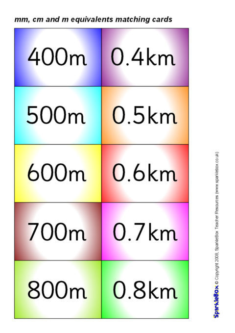 mm, cm, m and km Equivalents Matching Cards – Colour (SB6829) - SparkleBox