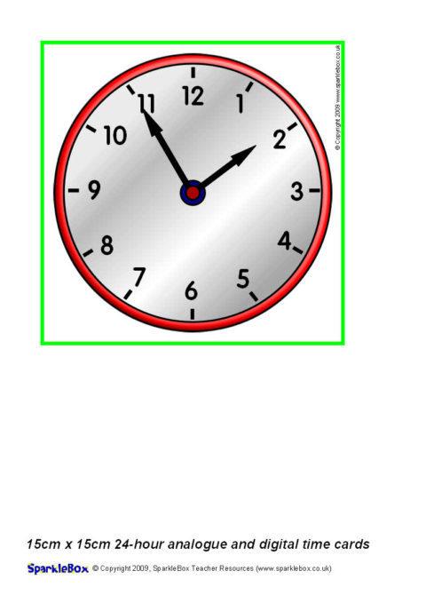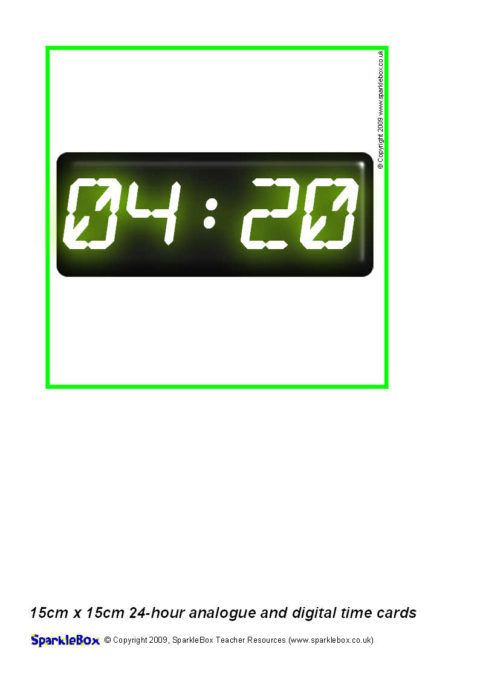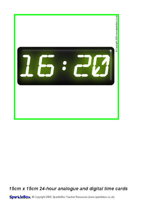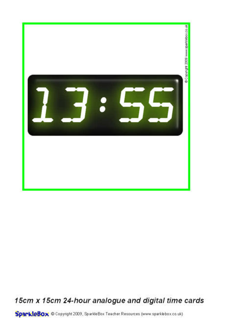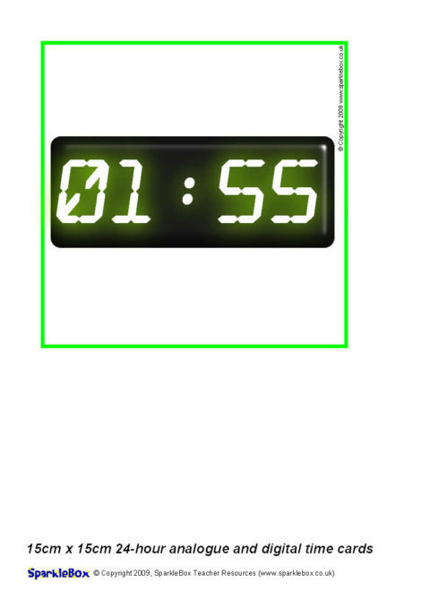 Analogue and Digital 24-hour (5 Minutes) Time 15cm x 15cm Cards (SB6841) - SparkleBox