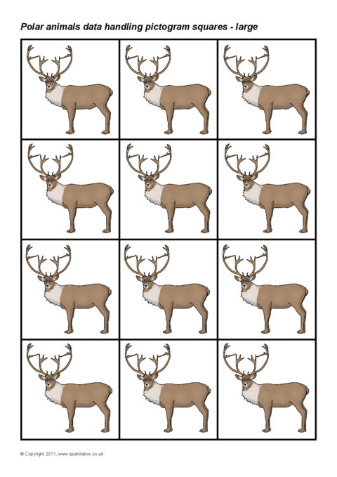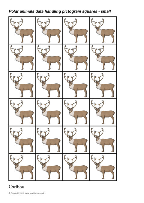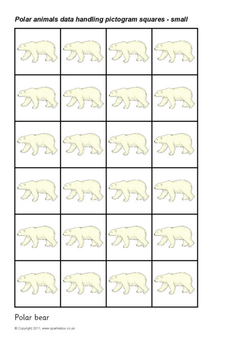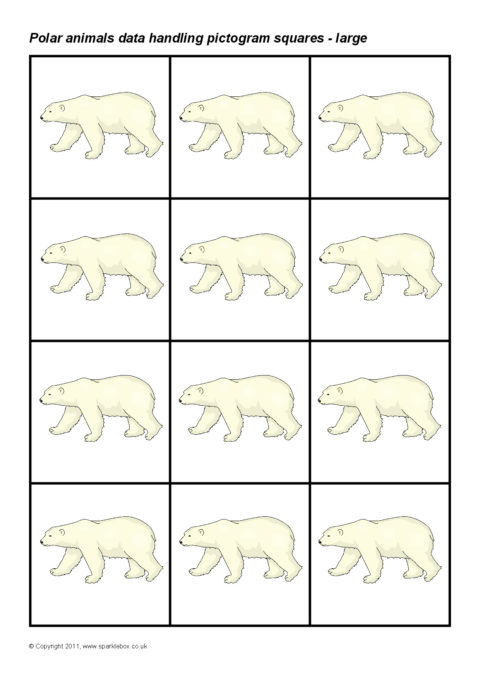 Printable squares featuring different Polar animals.  Ideal for use when creating a pictogram to showing the results of a class survey on pupils’ favourite polar animals.