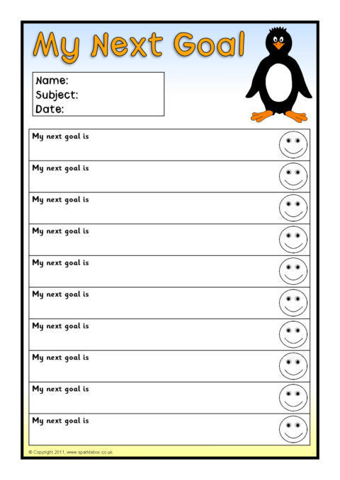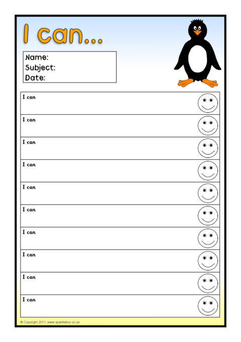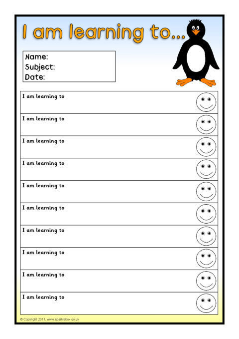 Editable target sheets (for Microsoft Word) with the text ‘I am learning to...’, ‘My next goal is...’ and ‘I can...’. Each sheet has space for 10 targets.