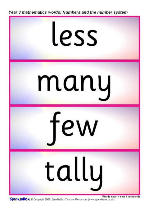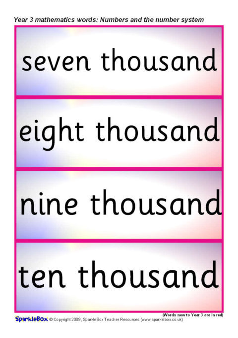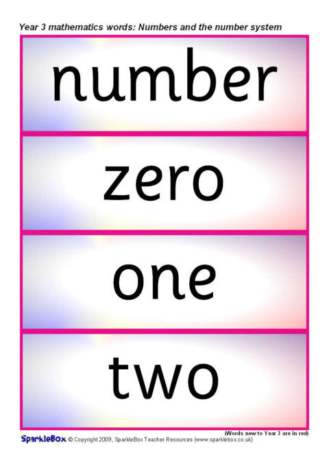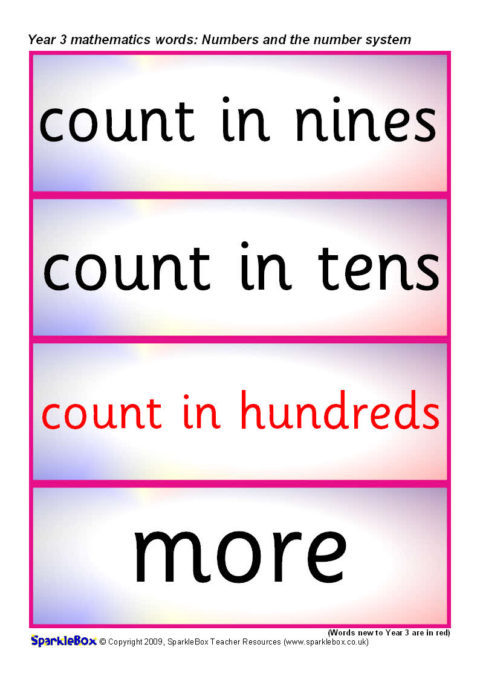 Year 3 Maths Vocabulary Cards: Numbers and the Number System
