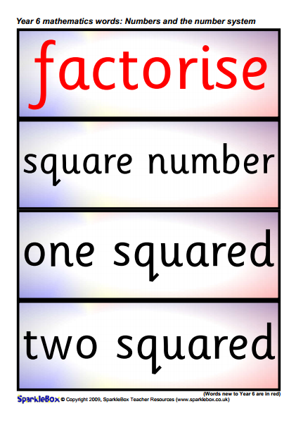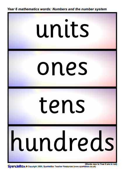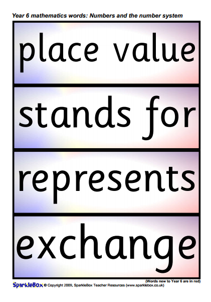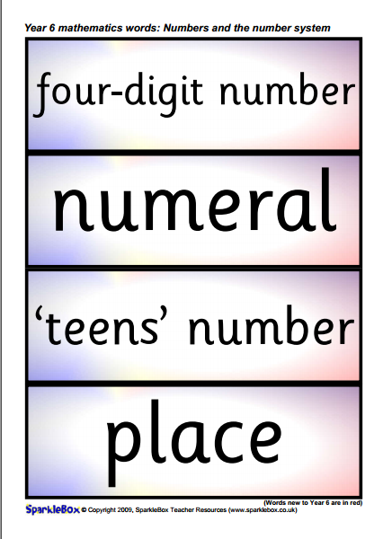 Year 6 Maths Vocabulary Cards: Numbers and the Number System