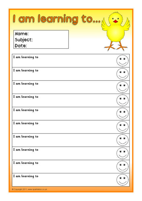 Editable target sheets (for Microsoft Word) with the text ‘I am learning to...’, ‘My next goal is...’ and ‘I can...’. Each sheet has space for 10 targets.