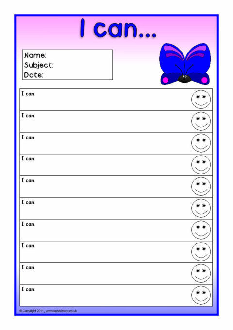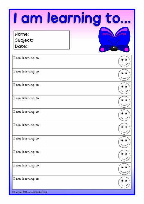 Editable target sheets (for Microsoft Word) with the text ‘I am learning to...’, ‘My next goal is...’ and ‘I can...’. Each sheet has space for 10 targets.