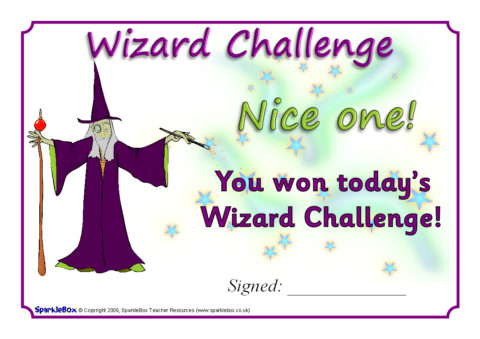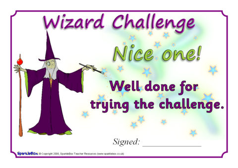3 simple printable certificates to reward pupils for completing your Wizard Challenges. Designed to accompany our Wizard Challenge signs pack.