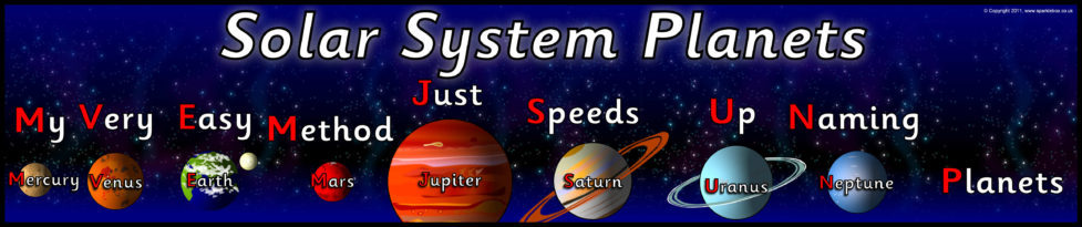 A colour banner showing the Solar System planets in order with a useful mnemonic.