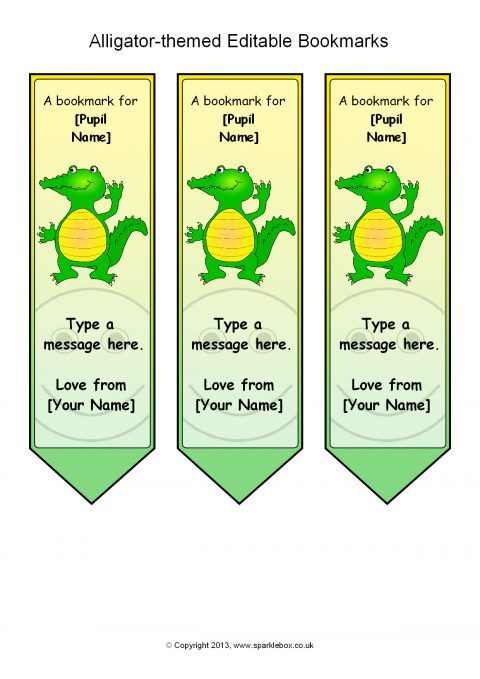 Alligator-themed Editable Bookmarks (SB9900) - SparkleBox