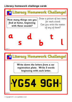 Literacy Homework Challenge Cards (SB06439) A set of 30 homework activity cards for children to take home.