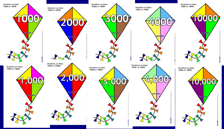 Numbers in 1000s to 10000 on kites