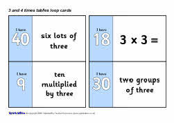 3 and 4 times table loop cards