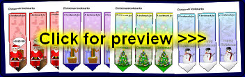 A set of editable templates (Microsoft Word) with colourful Christmas-themed bookmark designs. Add your own text to customise these before printing.