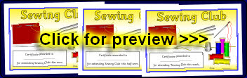 A group of 5 simple certificates to present to members of various sports clubs: football team, tag-rugby team, netball team, Dance Club, and athletics team.