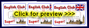 Printable certificates to present to members of your English (foreign language) Club termly, half-termly, monthly or yearly.