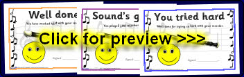 A group of 5 simple certificates to present to your recorder group for achievement and effort.