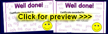 A set of printable certificates to present to children upon reading groups of phonemes.