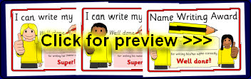Certificates to present your children when they can correctly write their name. Includes cursive and non-cursive versions.