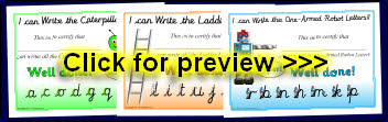 Simple certificates to present to children once they can write the ‘caterpillar letters’, ‘ladder letters’, ‘one-armed robot letters’ and ‘zigzag monster letters’.
