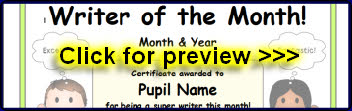 An editable ‘Writer of the Month’ certificate template that enables you to alter the main text and add a child’s name.