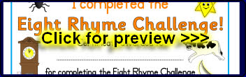 A printable certificate to present to children who have completed the Eight Rhyme Challenge: learning 8 nursery rhymes by heart.