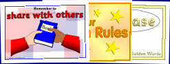 A set of useful A4-sized posters to promote good manners in your classroom. Each has a colourful picture and clear, bright text. Includes ‘Take turns’, ‘Be polite’, ‘Tidy up’, ‘Put things away’, ‘Put your hand up’ and more.