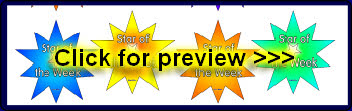 A set of printable stickers (8 per A4 page) designed to be printed on Avery Labels J8165. A variety of colourful designs including the text ‘Star of the Week’.