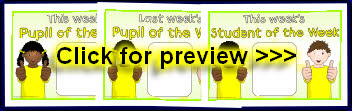 Printable banners for your ‘Pupil/Student of the Week’ classroom display.