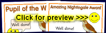 Nightingale-themed reward certificates to accompany the nightingale target sheets.