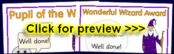 Wizard-themed reward certificates to accompany the wizard target sheets.