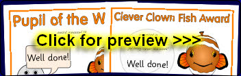 Clown fish-themed reward certificates to accompany the clown fish target sheets.