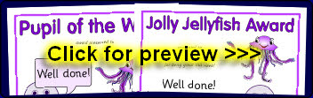 Jellyfish-themed reward certificates to accompany the jellyfish target sheets.