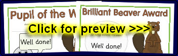 Beaver-themed reward certificates to accompany the beaver target sheets.