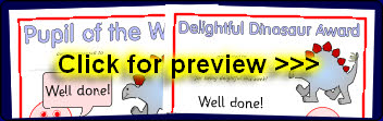 Dinosaur-themed reward certificates to accompany the dinosaur target sheets.