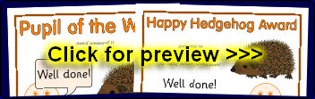Hedgehog-themed reward certificates to accompany the hedgehog target sheets.