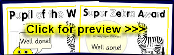 Zebra-themed reward certificates to accompany the zebra target sheets.
