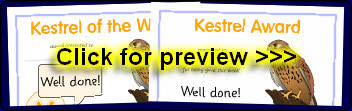 Kestrel-themed reward certificates to accompany the kestrel target sheets.