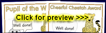 Cheetah-themed reward certificates to accompany the cheetah target sheets.