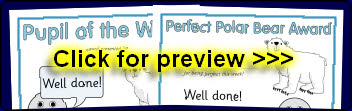 Polar bear-themed reward certificates to accompany the polar bear target sheets.