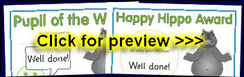 Hippo-themed reward certificates to accompany the hippo target sheets.