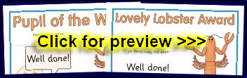 Lobster-themed reward certificates to accompany the lobster target sheets.