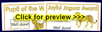Jaguar-themed reward certificates to accompany the jaguar target sheets.