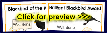 Blackbird-themed reward certificates to accompany the blackbird target sheets.