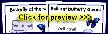 Butterfly-themed reward certificates to accompany the butterfly target sheets.